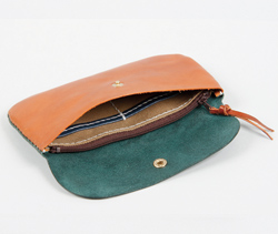 内側にファスナーポケットの小銭入れが付く財布。手縫いで仕立てます |