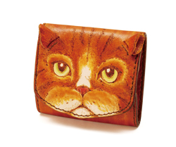 カブセに立体的なネコをあしらったボックス型コインケース。電気ペンとクラフト染料を使って、SC クラフトにリアルなネコの表情を描いていきます。ネコの色や模様は自由に作